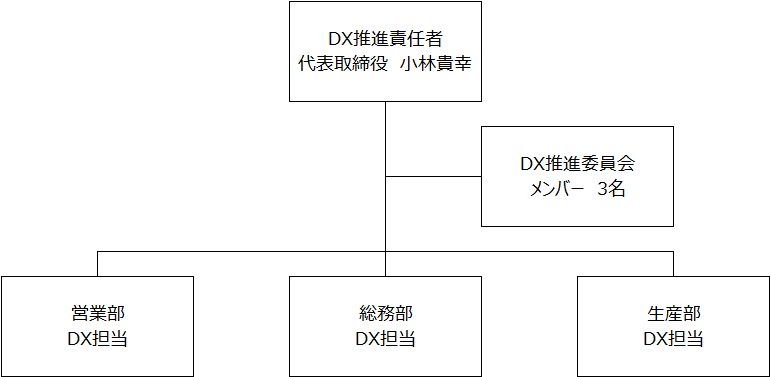 代表取締役社長をトップとするDX推進委員会を設置し、各部門と連携してDX戦略の策定と実行を担当。定期的な会議を開催し、DXの進捗状況をレビューし、戦略の必要に応じた調整を行う。